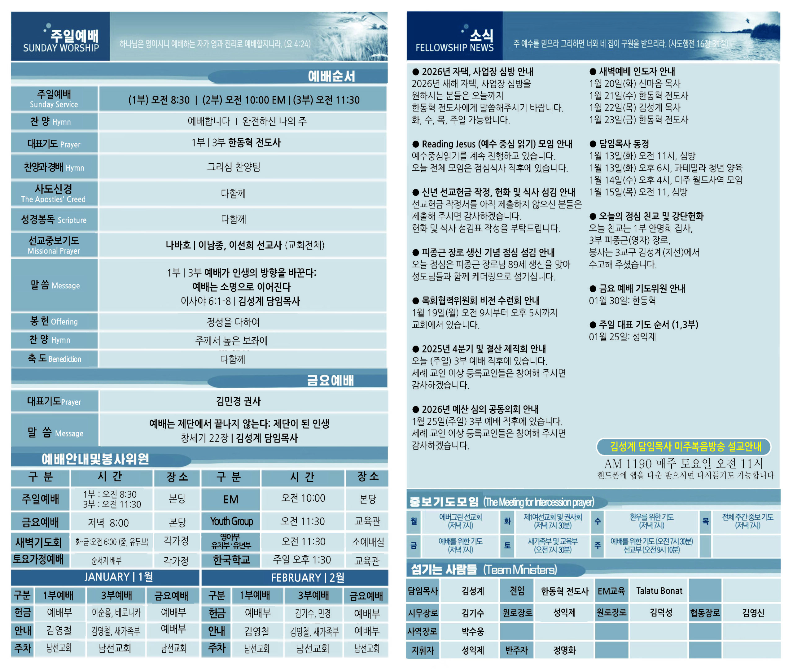 1월 11일 교회 주보