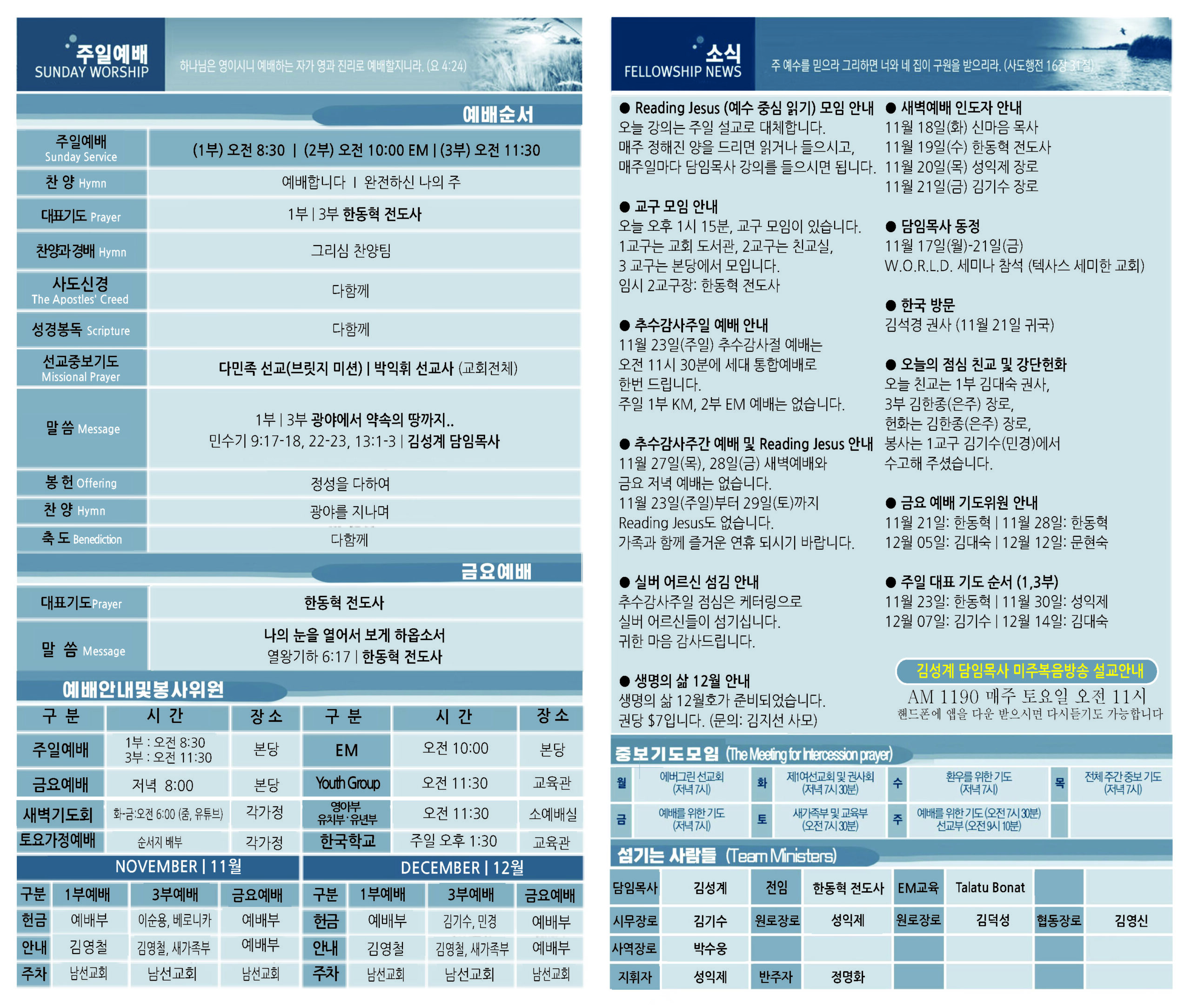 11월 9일 교회 주보