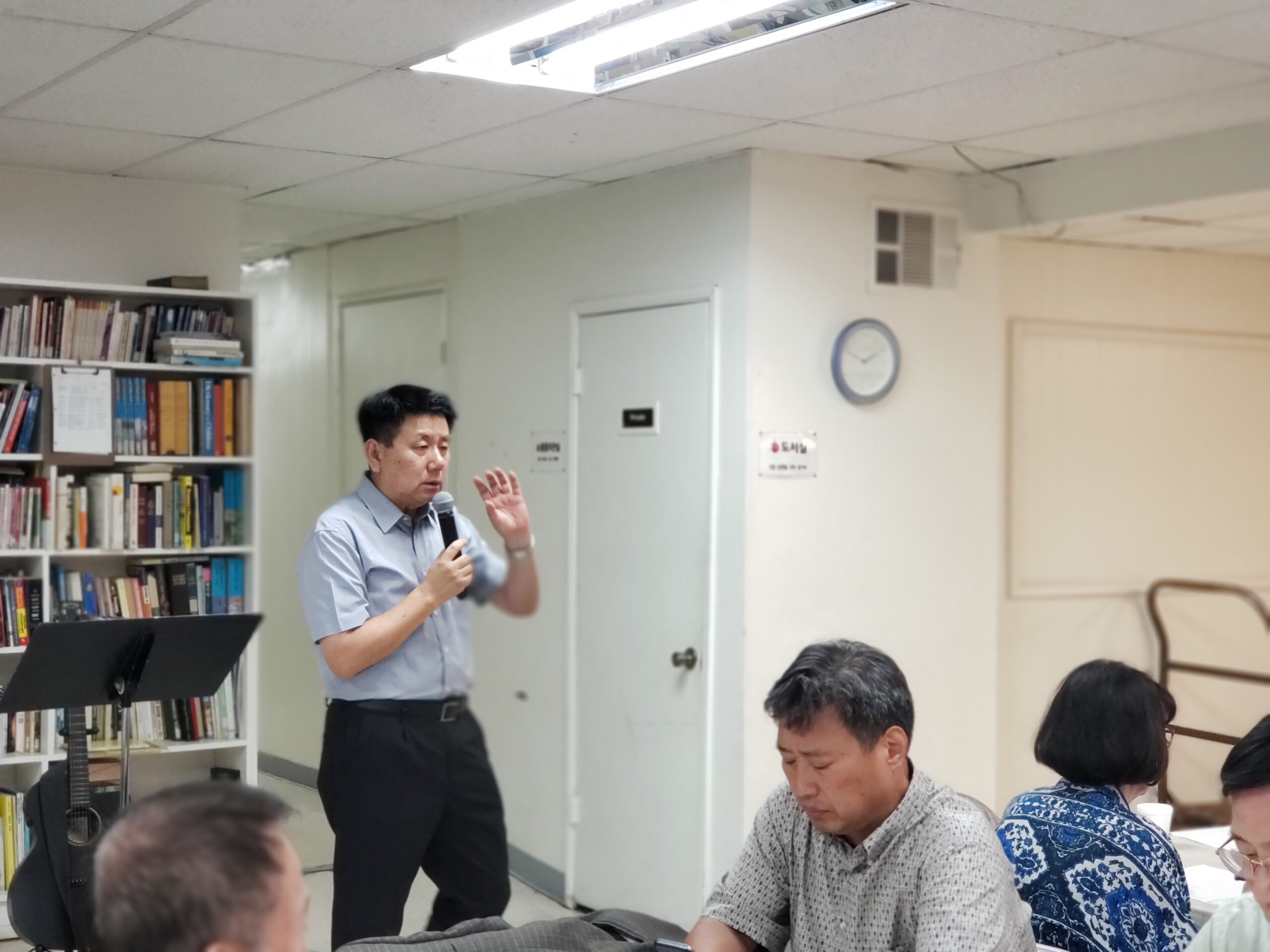 중보기도자 간담회가 도서실에서 있었습니다. 후반기 중보기도 모임 활성화를 위해 논의했으며 주일부터 토요일까지 매일 기도가 꺼지지 않는 교회가 되길 다짐했습니다.