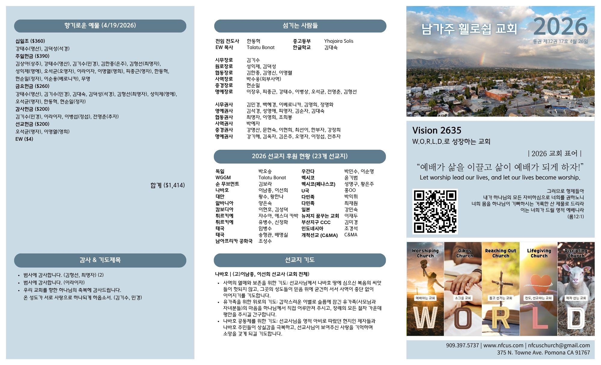 4월 26일 교회 주보