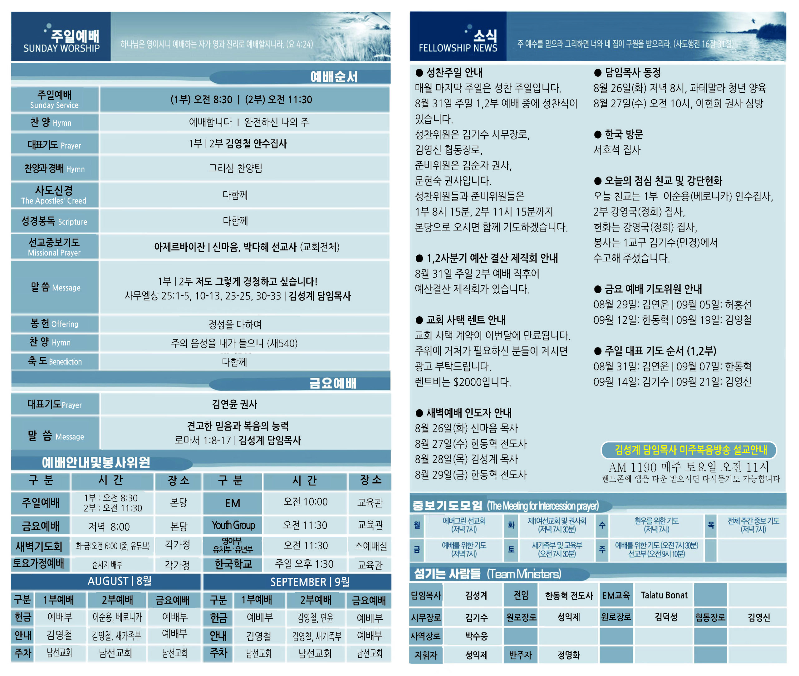 8월 31일 교회 주보